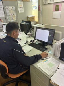 2日目は朝からあいにくの本降りの雨で少し心配しましたが、3人とも元気に時間通りに来てくれました。雨の中でも遅刻せずに来てくれる姿勢に、社員一同感心しました。