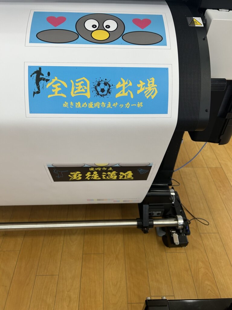 大型プリンターの操作は初めての体験でしたが、説明を聞きながら慎重に進めていきます。ボタンを押すと、機械が動き出し、自分たちがデザインしたバナーが印刷されていきます。